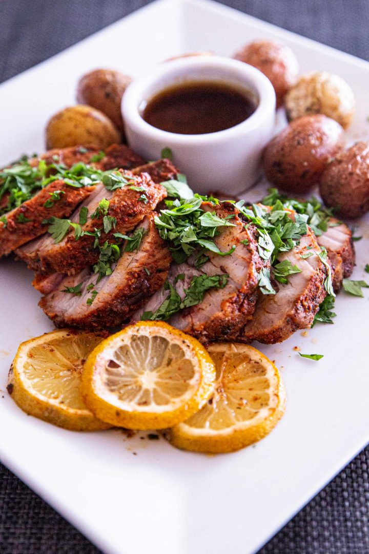 Oven-Roasted Pork Loin Au Jus with Oven-Baked Mini Potatoes. 🐷🥔 📸: 24-70mm 2.8 L