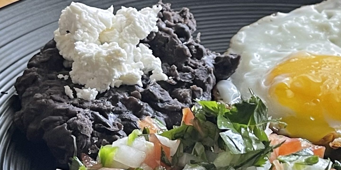 Fried eggs, black beans, pico de gallo, panela, handmade tortillas.